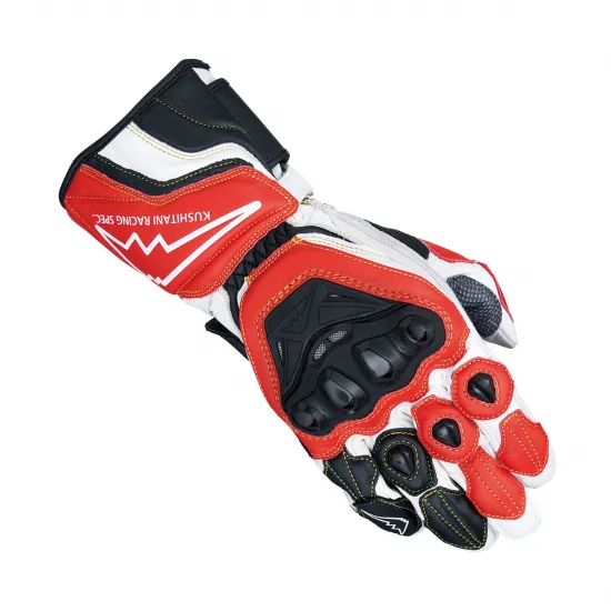 GPのレースシーンでの研究開発を経て造られたレーシンググローブ。多重構造システムを採用し、絶妙なフィット感と運動性を実現しています。様々な硬度・形状の内装素材により拳部のストレスを軽減し、受けた衝撃を最大限に緩和します。高強度ナイロン糸で縫製。手型製法、ピケ縫いで仕上げています。