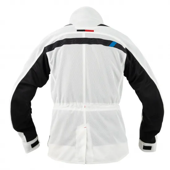 洗練されたデザインのフルメッシュロングジャケットです。後襟から袖口までの滑らかなラインデザインやウエストドローコードは着用時のスタイルアップの効果があり、前身4つの大型ポケットで大きな収納力も持ち合わせます。サイズ拡大調整のフロントダブルファスナー仕様を採用。 「KUSHITANI CONNECTION.」採用。