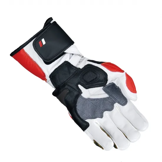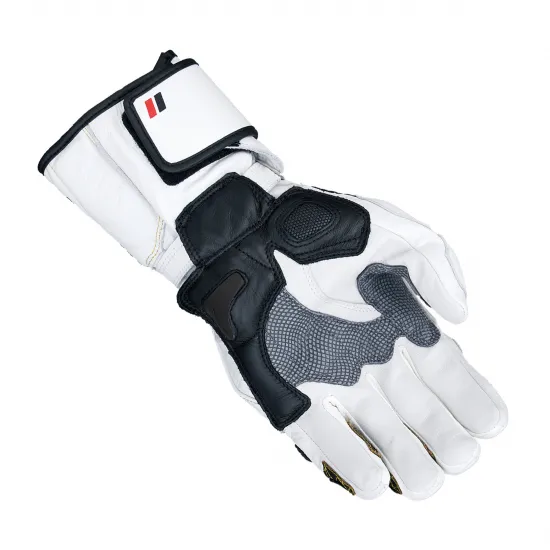 GPのレースシーンでの研究開発を経て造られたレーシンググローブ。多重構造システムを採用し、絶妙なフィット感と運動性を実現しています。様々な硬度・形状の内装素材により拳部のストレスを軽減し、受けた衝撃を最大限に緩和します。高強度ナイロン糸で縫製。手型製法、ピケ縫いで仕上げています。